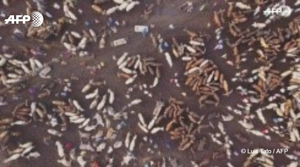 "Move! Move!" The herders cry, the packed crowd divides, and a vast column of cattle charges through the swirling dust, their long sharp horns swaying like a forest. Hundreds, possibly thousands, of beasts push their way forward, trampling the ground strewn with plastic bags. It is mid-morning but already the heat is blistering. The buyers have arrived, and the hard bargaining can begin.